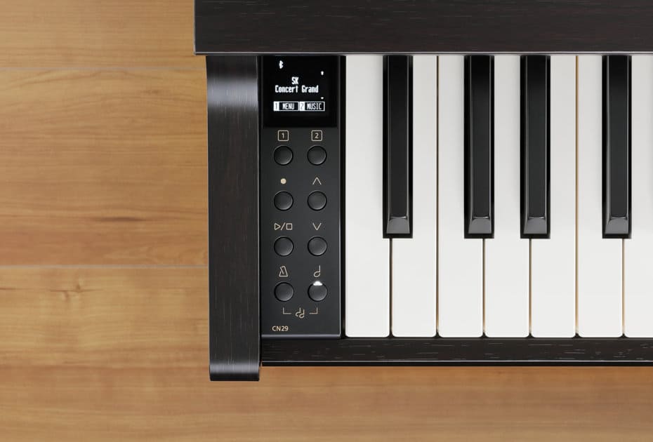 Featuring the Responsive Hammer III keyboard action with 88-key counterweights, stunning SK-EX and EX concert grand piano sounds, and a delivery system developed by audio specialists Onkyo, the piano-focussed CN29 offers best-in-class touch & tone, Bluetooth® connectivity, and built-in lesson and recorder functions within a compact, elegant cabinet.